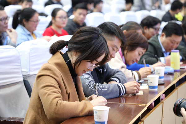 “业精于勤,荒于嬉。”在主持人的倡导下,现场师生诵读国学经典,感悟中华美德的真谛与内涵。品德环节,与会人员争相发言,结合张龙老师的主题宣讲内容分享了自己的感受和体会。传德环节,大学生艺术团表演了歌舞《我们都是追梦人》,澳门十大网投平台排行学子向张龙老师敬献鲜花以表达谢意和敬意。润德环节,与会人员将现场亲笔书写的留言卡投入爱心箱中。