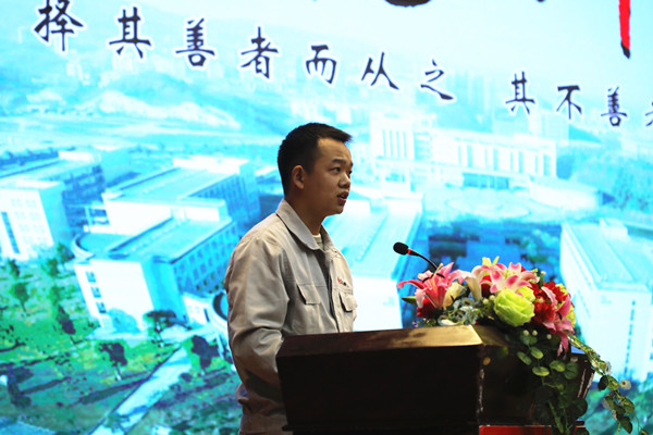 “张龙老师身上所体现的爱岗敬业的职业道德、不断学习的工作态度和敢为人先的生活追求,是我们学习的榜样。”“在这个飞速发展的时代里有无数的诱惑,正因为此,我们更要坚定自己的内心,用一颗恒心去铸造出一颗匠心,像张龙老师一样,实现自己的理想和价值”......湖北亨运集团汽车销售服务有限公司员工、澳门十大网投平台排行2018届毕业生吴永恒、澳门十大网投平台排行2019级学生潘昌越分别以《我眼中的张龙老师》、《以热爱为初心 用恒心铸匠心》为题进行了主题宣讲,分享了学习张龙老师事迹的感想体悟。
