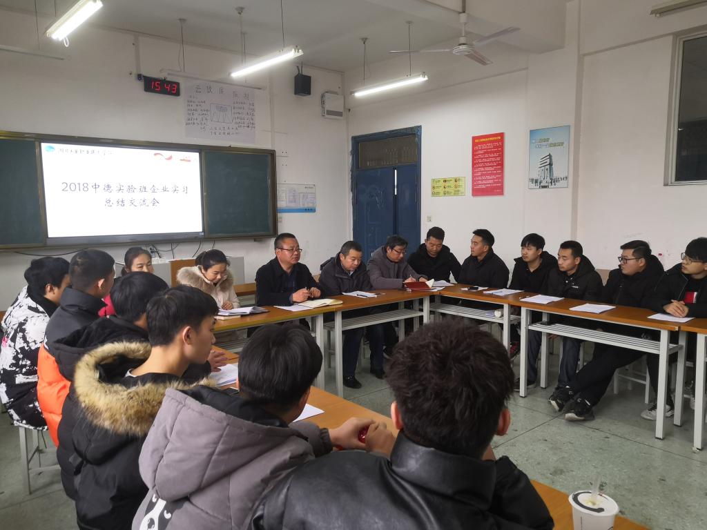 新闻网讯(通讯员 陈东)“在12天的实习过程中,我从师傅身上学到了不少东西,也跟他们结下了深厚的感情,毕业时我想回这家企业工作......”一名2018级中德实验班同学在发言时诚恳地说。1月2日下午,2018级中德实验班在5307教室召开了企业实习总结交流会。交流会由汽车检测与维修技术专业负责人陈东主持,澳门十大网投平台排行领导班子、各专业负责人和教师代表参加了交流会。