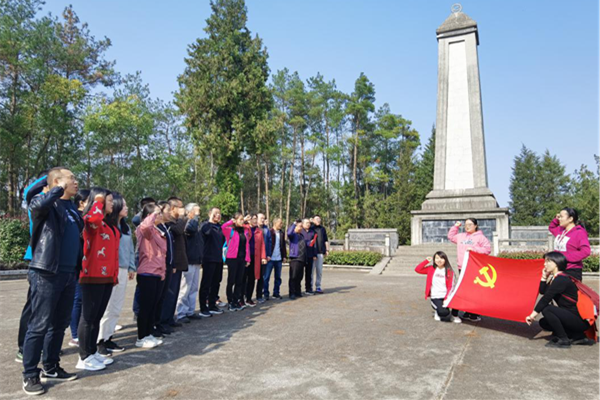 在房县土城花田酒溪中国黄酒民俗村,大家品鉴黄酒、观赏民俗、参观博物馆,感受到各级政府对新农村建设的科学谋划和取得的喜人成果。在房县凤凰山革命烈士陵园,党员们紧握右拳,重温誓词,向先烈致敬,表达不忘初心使命、投身人民满意教育的决心信心。