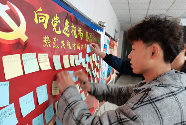 活动前期制作了祝福海报,通过澳门十大网投平台排行分团委、学生会向广大同学宣传,并在活动现场向前来送祝福的同学们发放便利贴,邀请他们写上对党100周年华诞的祝愿。在课间时间,同学们纷纷将对党的感恩和美好祝福通过贴便签的形式张贴在展板上,表达对党的热爱与拥护。