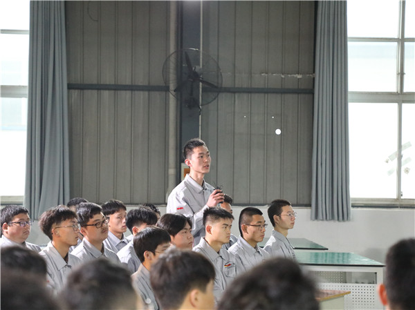 “王涛老师作为十大网投官网特聘教授经常与我们交流‘马灯精神’、工匠精神等内容,勉励我们干一行爱一行,精益求精做技术能手、现代工匠。您能结合自身经历跟我们讲讲,怎样才能真正把工匠精神学到心里、用在手上、落到实处呢?”面对同学们真挚的提问,王建清代表娓娓道来:“当初,我从部队转业来到东风汽车公司上班,一进厂里看到大门口一个大宣传标语上写着——‘像全国劳模王涛同志一样爱岗敬业’,当时就在心里想:王涛是谁?我连当上全厂劳模都很困难,能像王涛师傅一样该有多难啊?不知不觉28年过去了,我从被推荐为东风汽车公司劳动模范,到后来像师傅一样成长为全国劳动模范。并不是比别人优秀多少,像师傅说的,我坚持做好了一件事,那就是:按照要求把自己本职岗位的工作做好,把自己应该干好的事干好就行了。我认为,这就是我们产业工人应该传承的工匠精神”