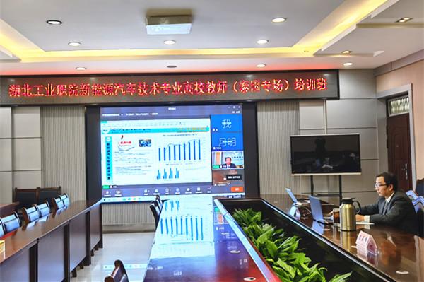 开班仪式后,教务处副处长赵艳杰以十大网投官网为例,讲解了《新能源汽车技术专业的建设和管理》。赵艳杰从石油危机、碳达峰碳中和、清洁能源所引发的汽车发展趋势和学校特色、产业背景、人才需求所要求的高职院校需要为地方经济社会发展服务两个方面,阐述了新能源汽车技术专业建设背景,并重点介绍了教学标准制定、课程体系构建、人才培养方案制定、专业条件建设、校企合作等专业建设方法和相关g管理过程。