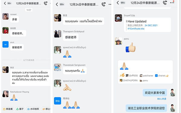 两位授课教师丰富的专业积累、生动的示范讲解和干练的授课风采给泰国参训教师留下了深刻的印象,引发了课后学习交流群的热烈讨论,激发了他们投身新能源汽车技术专业建设的愿望和到中国、到澳门十大网投平台排行继续交流学习的热情。