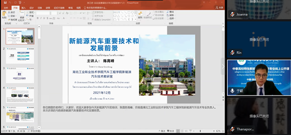 新闻网讯(文/于颖 图/熊超)12月24日,十大网投官网与泰国职业教育委员会办公室、北京瑞泮国际教育科技有限公司联合举办“澳门十大网投平台排行新能源汽车技术专业高校教师(泰国专场)培训班”。开幕式由校国际交流与合作中心主任于颖主持,副校长严永金和泰国邦巴空工业学院校长披农·威瑞雅颇瑞克博先生分别代表中泰双方职业院校致辞,澳门十大网投平台排行院长张健、教务处副处长赵艳杰、新能源汽车技术专业负责人陈高峰出席开幕式。