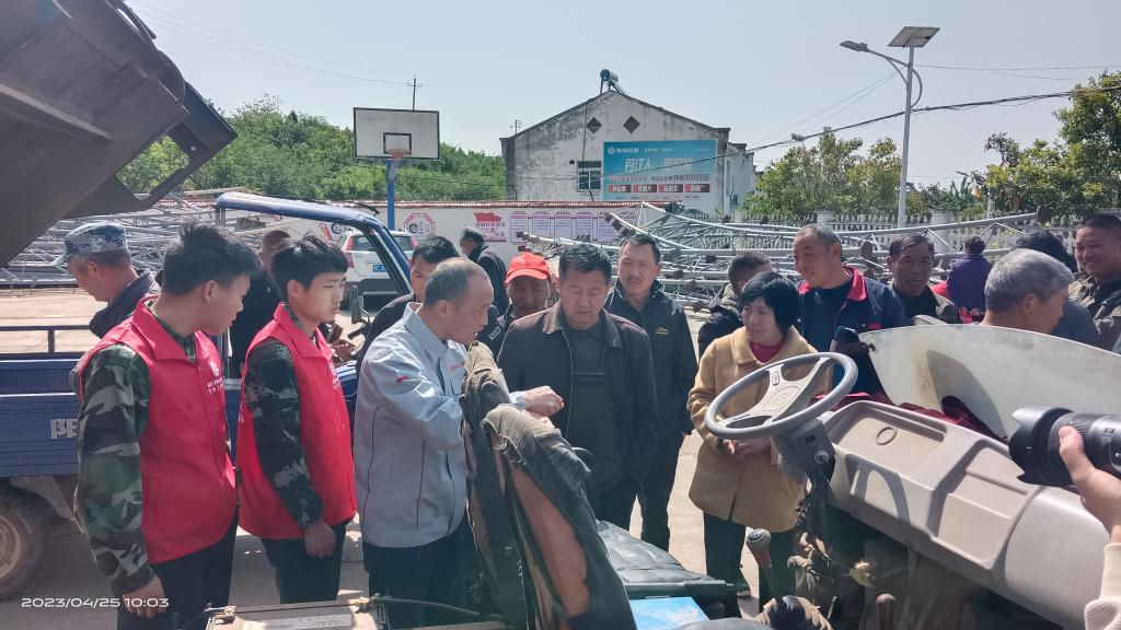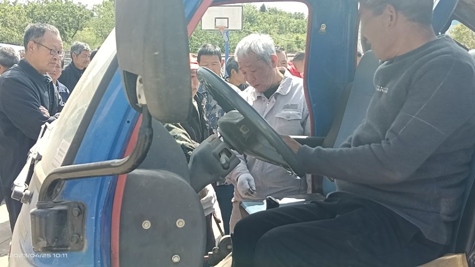 根据驻村工作队前期摸排的情况,刘德涛老师首先为村民们进行了培训,介绍了有关农机维修保养和安全使用知识。随后,一行人现场对农用机械和车辆进行故障检查,并解答村民们的相关疑问。师生们经过近一个小时的检测调试,顺利排除了一位村民的农用车故障。