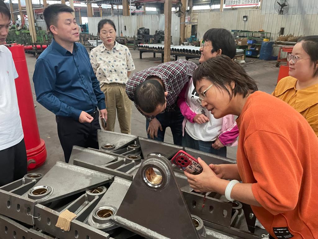 在湖 北万邦液压装备有限公司,十大网投官网教师听取了企业负责人张建亮关于企业生产经营、科技研发、技术难题等情况介绍,参观了生产车间。对于企业提出的产品轻量化、装备自动化、数字化赋能等技术需求,教师团队给予了现场指导,并与公司技术人员进行了深入交流和技术对接,表示将根据企业的需求后续跟进服务,助力企业创新发展和技术进步。交流活动结束时,企业负责人深表满意和感谢,并就后续校企合作达成意向,接下来将邀请学院教师对企业员工开展培训和技术指导。
