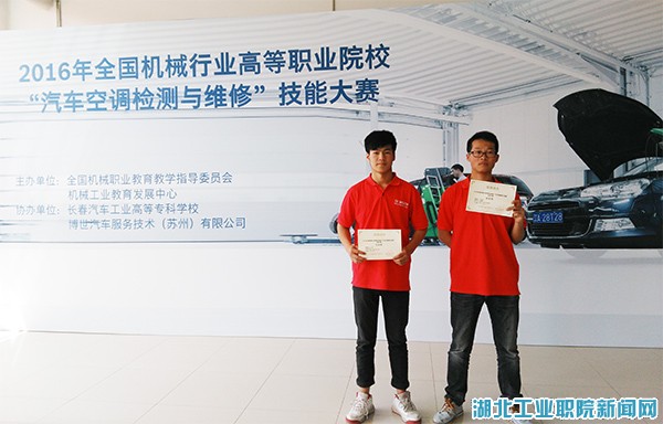 (通讯员 刘德涛 陈林)为进一步探索产教深度融合与发展新机制,搭建竞技与交流平台,提高人才培养质量,6月1日至2日,在长春举办的“2016年全国机械行业高等职业院校‘汽车空调检测与维修’技能大赛”,经过2天激烈角逐,圆满落幕。比赛中,十大网投官网2名参赛选手——2014级中德实验班王涛、徐浩翔同学以扎实的知识、精湛的技术,在众多参赛队中脱颖而出,获得1个二等奖和1个三等奖,为学院争得了荣誉。