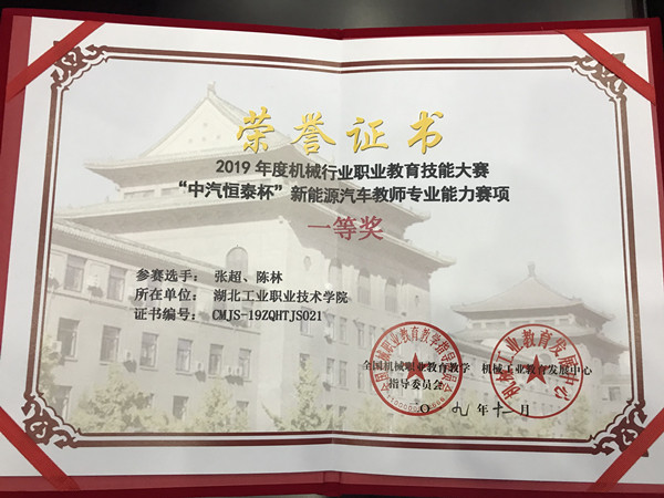 新闻网讯(通讯员陈林)11月16日至17日,2019年度机械行业职业教育技能大赛——“中汽恒泰杯”新能源汽车专业教师能力大赛顺利落下帷幕,十大网投官网张超、陈林老师喜获一等奖。